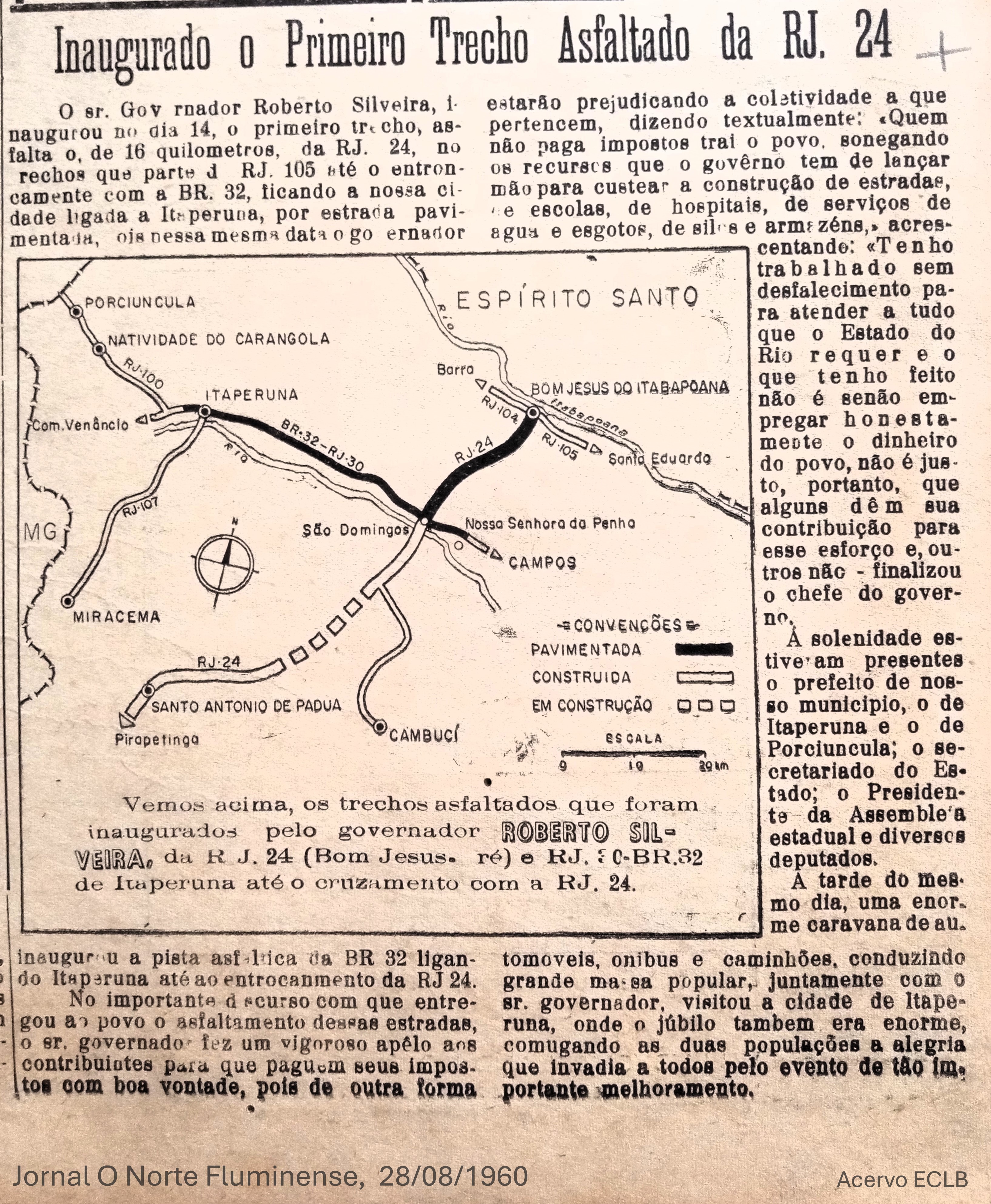 (2) SERÁ INICIADO em breve o asfaltamento: ótima estrada ligará Bom Jesus a Itaperuna. A Voz do Povo, Bom Jesus do Itabapoana, n. 1262, 23/01/1960.